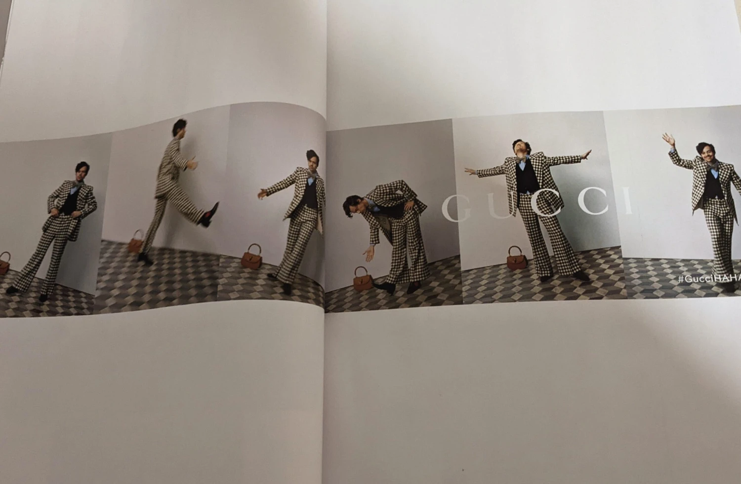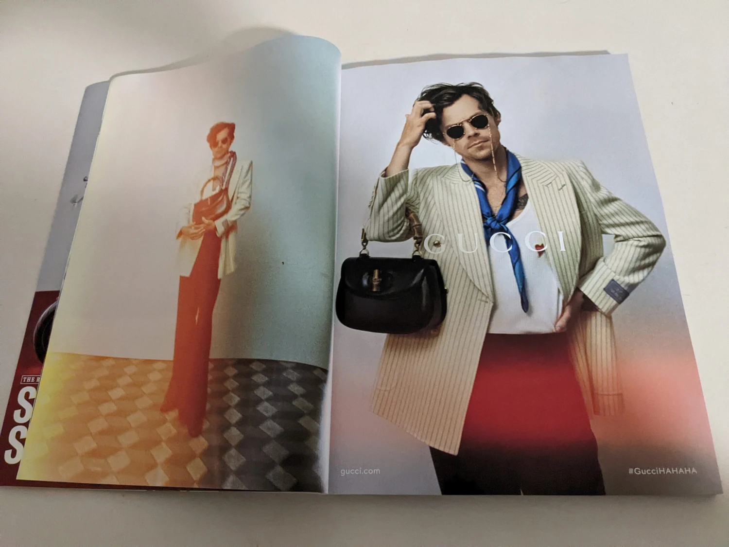 4 page spread with Harry promoting his Gucci campaign.