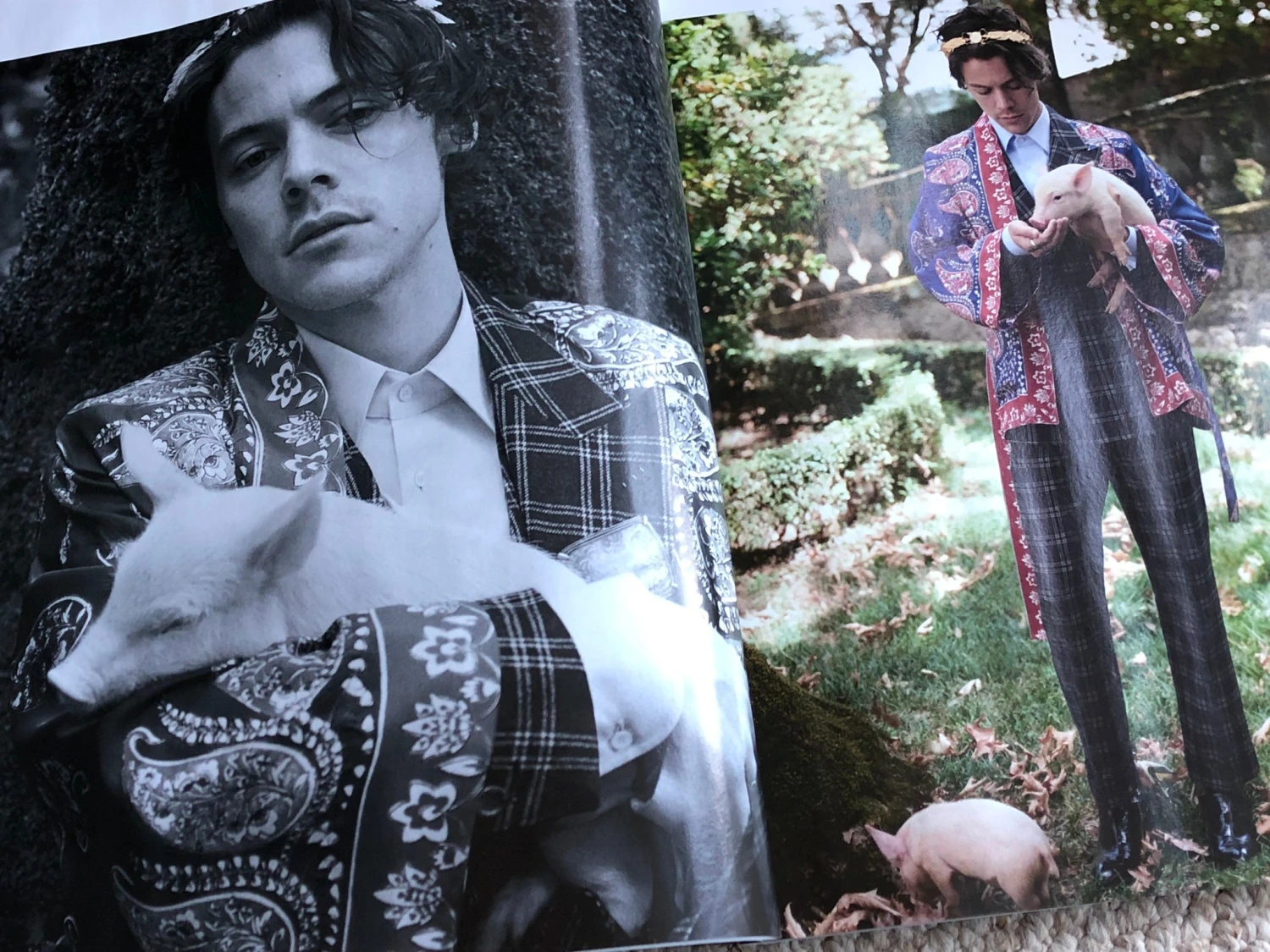 Plus 2 page advert for Gucci with Harry Styles.
