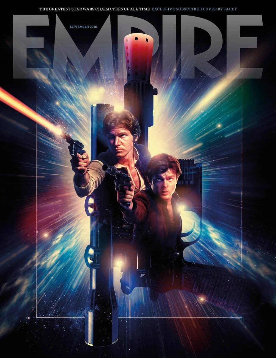 Rogue. Smuggler. Hero. When Empire put out the call for readers to vote for the Greatest Star Wars Character of All Time, you turned out in your droves and put Han Solo in the top spot – captain of the Millennium Falcon, fearless Rathtar hauler, and the guy who definitely, categorically shot Greedo first. To celebrate, he’s taken pride of place on the exclusive subscriber cover of Empire’s September issue – both incarnations side by side, set against that iconic blaster.