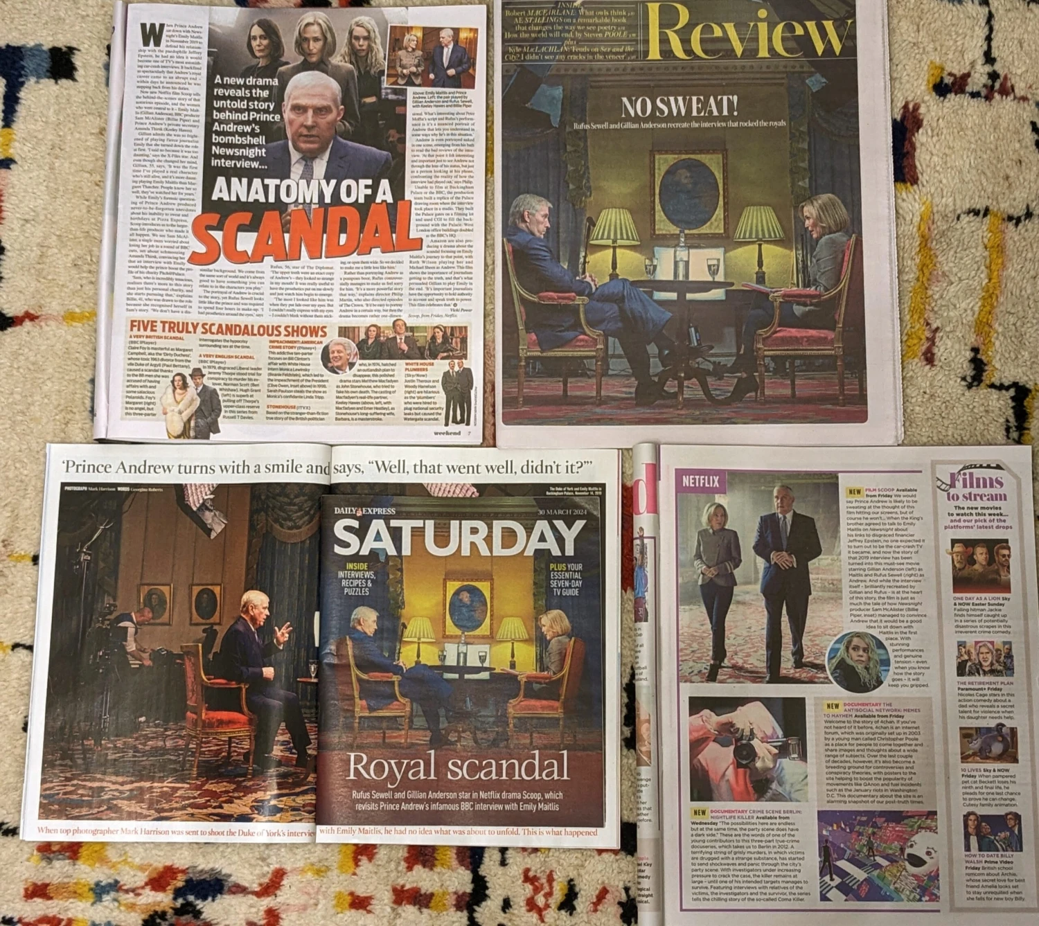 A selection of 5 UK Magazines covering the new Scanal show featuring interviews, photos and more with Rufus Sewell and Gillian Anderson. Includes two covers.