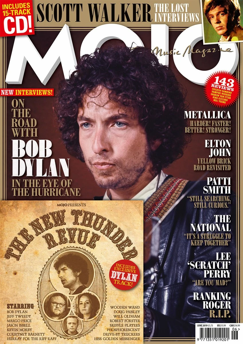From the beginning, radically and regularly, Bob Dylan reinvented himself on stage. This month, MOJO relives the Rolling Thunder Revue, the revolutionary mobile happening that gave him new life, while a mindblowing version of Hattie Carroll from Bob’s new Rolling Thunder box set kicks off MOJO’s latest covermount CD, augmented with simpatico songs by Jeff Tweedy, Margo Price, Courtney Barnett and more. Inside the magazine, an in-depth Scott Walker tribute unveils unpublished interviews with Scott, John and Gary Walker; kd lang settles into the MOJO Interview hot seat; Metallica go back to the Dawn Of Thrash; the true life story of Elton John’s Goodbye Yellow Brick Road. Plus: Patti Smith, Amyl & The Sniffers, Lee “Scratch” Perry, The National, Mavis Staples, Vampire Weekend, Neil Young, Childish Gambino, Morrissey, Big Thief, George Benson’s harp, Flexi Discs and X-Ray Spex pics!