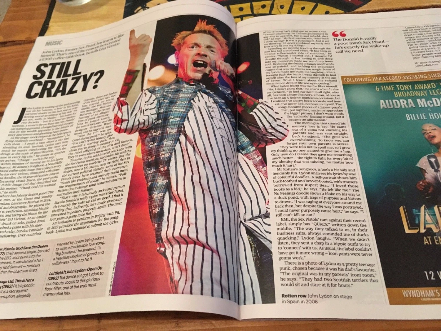 In depth interview with large portrait with the Sex Pistols star.