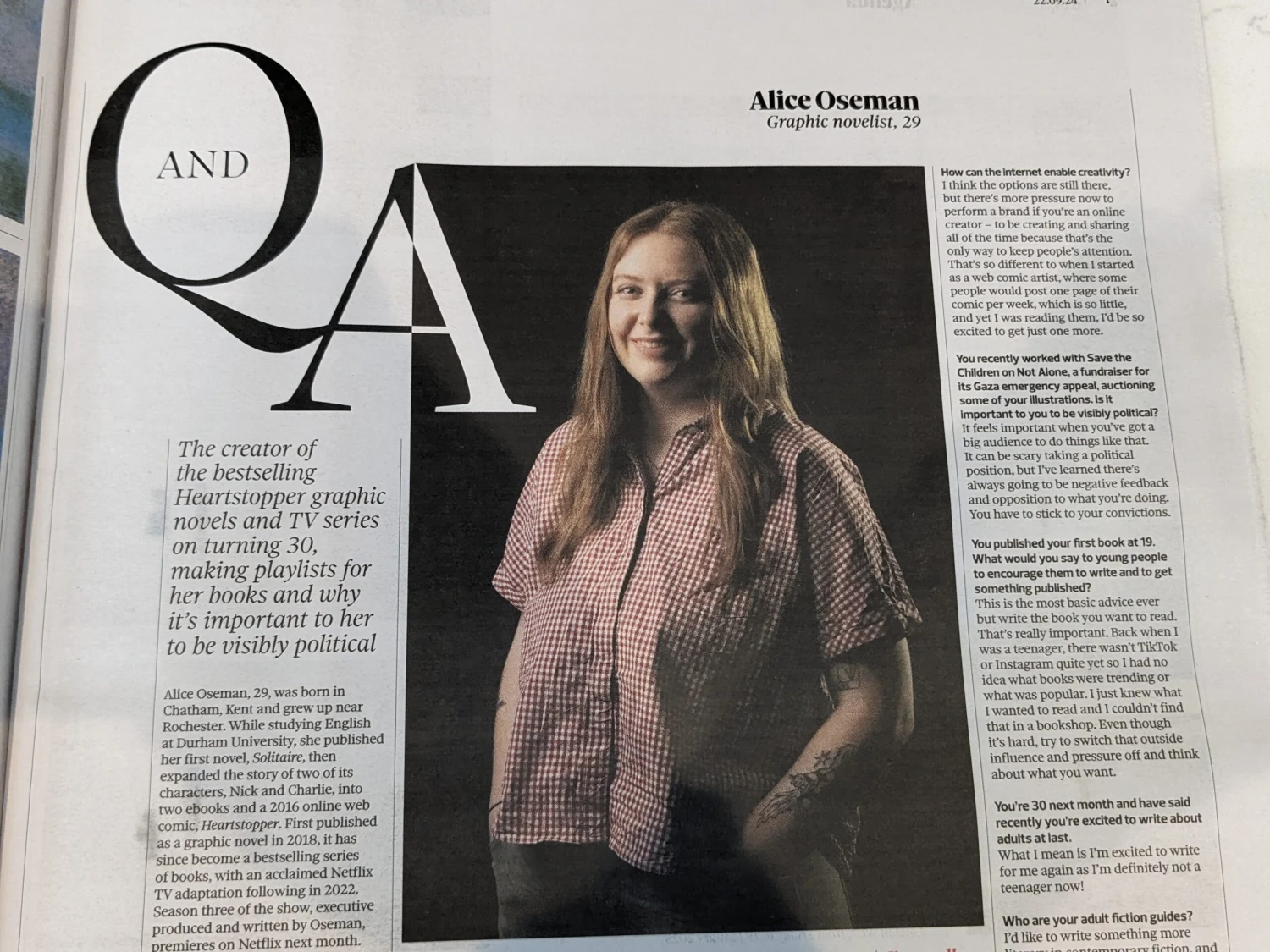 In depth interview with portrait with the Heartstopper creator.