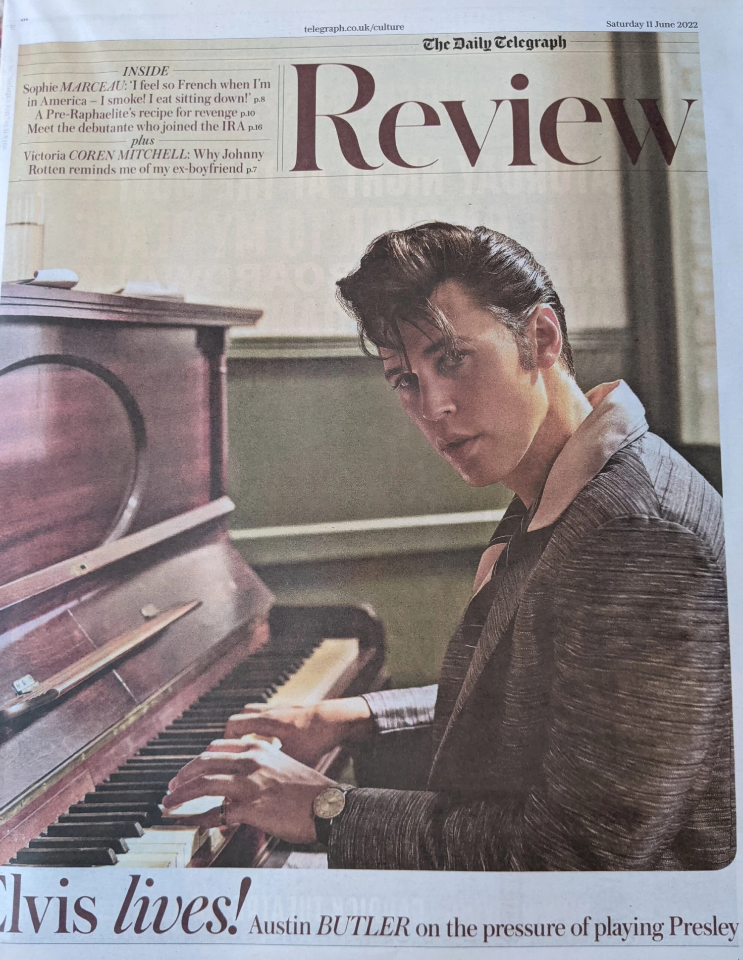 Cover and interview on the pressure of playing Elvis.