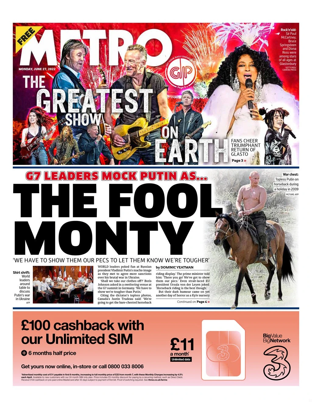 THE METRO Newpspaper 27th June 2022 – Brand New Condition