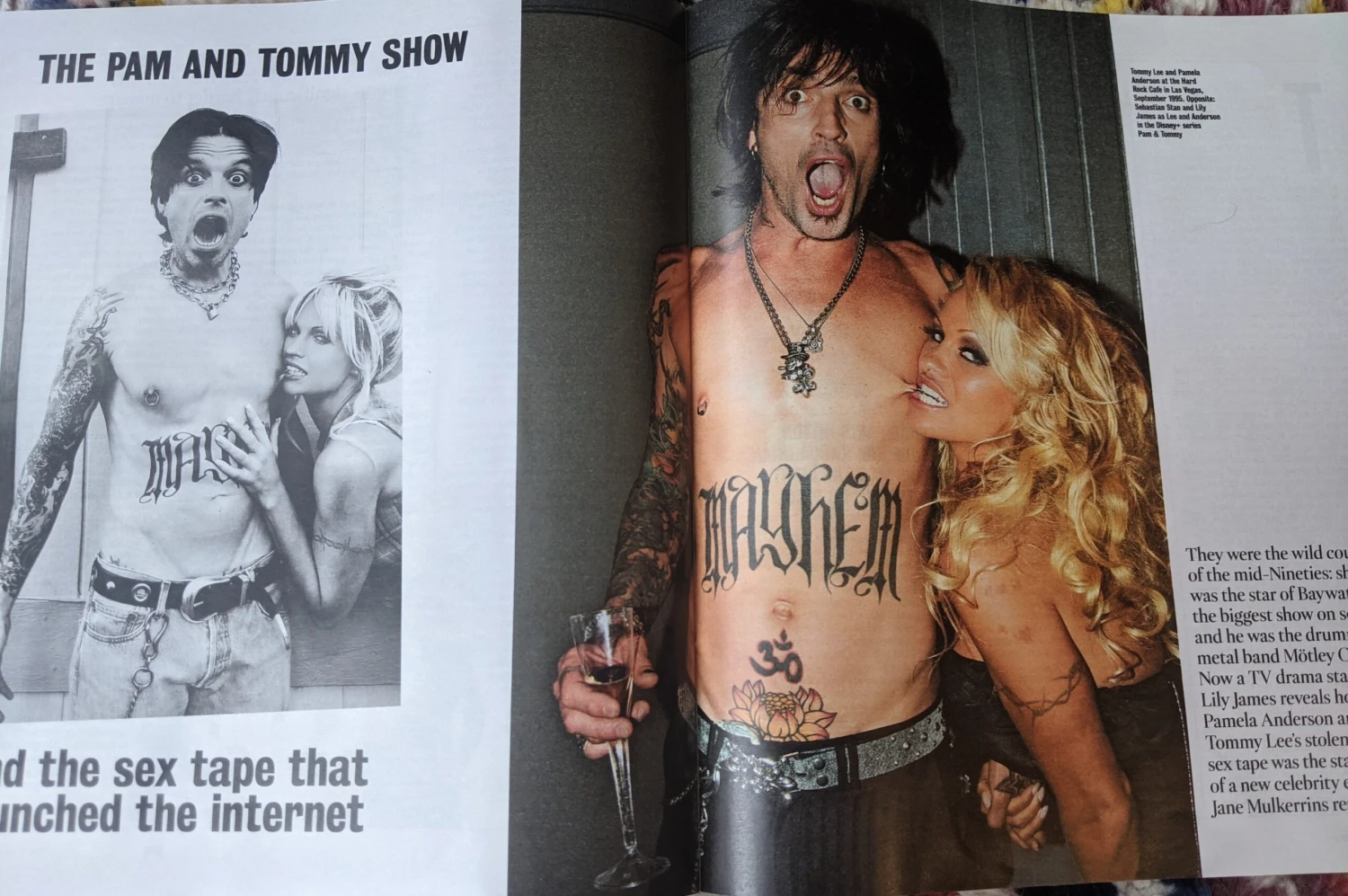 The Pam And Tommy Show: In depth report with portrait of Sebastian Stan and Lily James plus the real Pamela Anderson and Tommy.